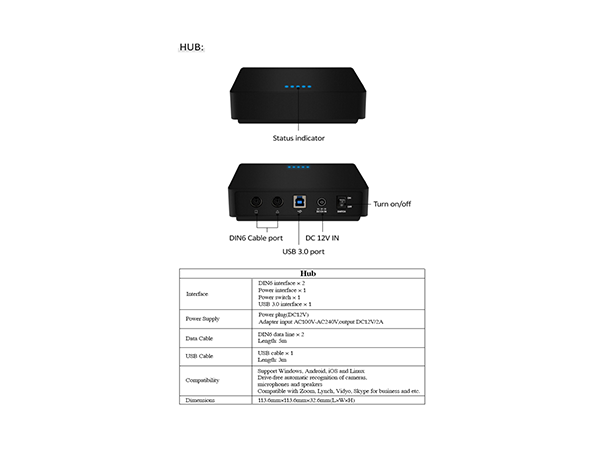 - Hub: Plug-and-play audio system setup; compatible with Mac® and PC;